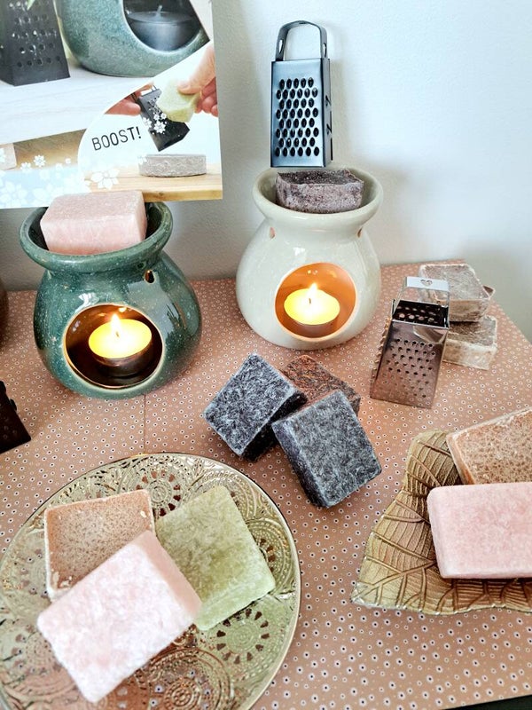 Heerlijke geurblokjes. Zacht roze met frisse zoete geurenmix van rozen en witte Musk. Wij stellen ook pakketjes samen doormiddel van een rasp en schaaltje of aroma houder