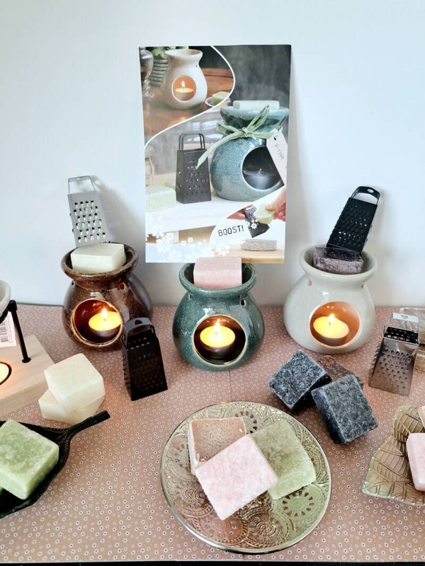 Wij stellen ook diversen pakketjes samen doormiddel van een geurblokje rsp en schaaltje. Als de geur na een tijdje vervaagd kan je de rasp eroverheen schaven en komt de heerlijke geur met terug.