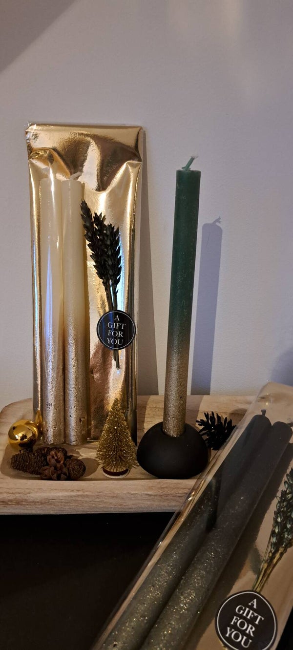 Diner kaarsen Creme/goud Inclusief 2 zwarte houders