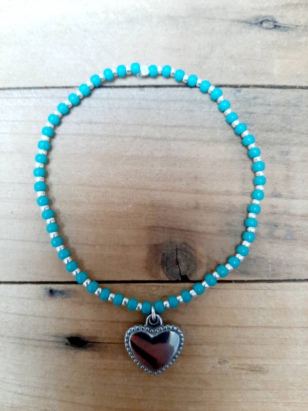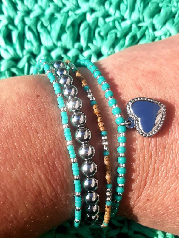 Armband zilver met turquoise. Het hartje is van stainless steel.