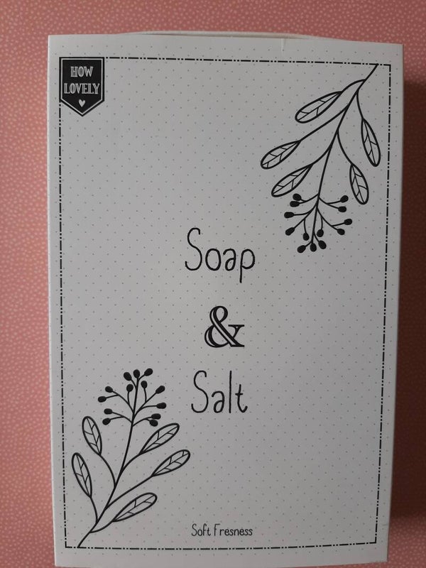 Een zeepje in de vorm van een hartje, bodyscrub,badzout en handdoekje